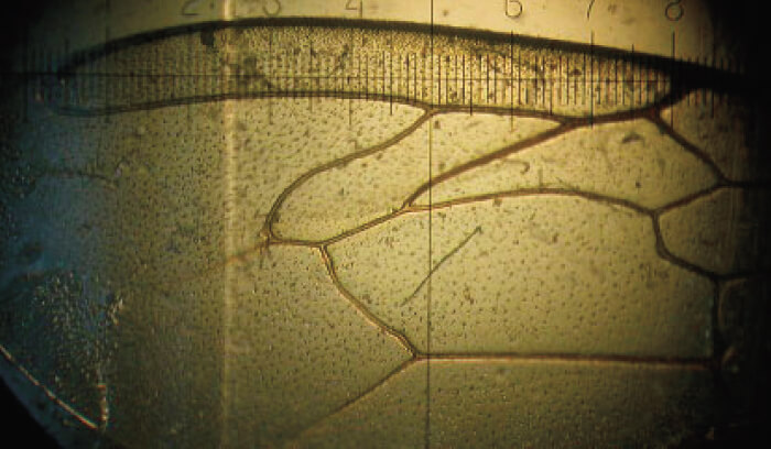 Отсутствие рекомендаций в стандартной методике по установлению осевой линии дискоидальной ячейки вызывает неопределенность в получаемых результатах. Вследствие этого, пчеловоды - профессионалы стараются всегда иметь постоянного оператора, измеряющего морфометрические признаки пчел. На рис. 2 заштрихованная зона представляет диапазон неопределенности установки линии - шкалы микроскопа.