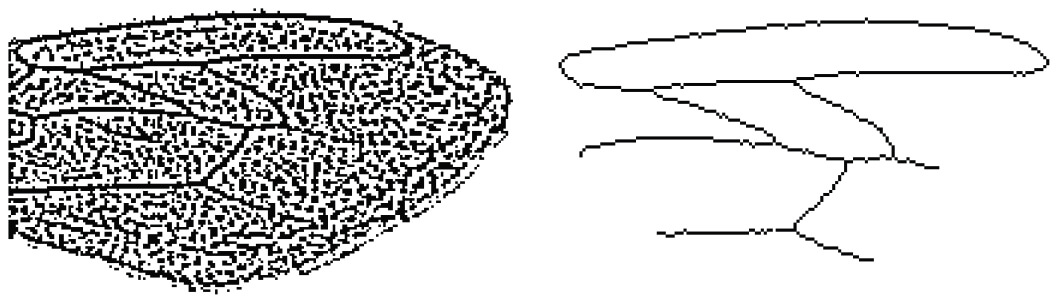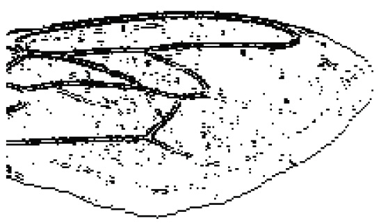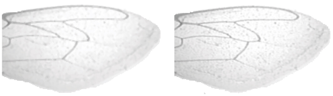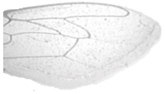 | Входное изображение: правое переднее крыло пчелы в серых полутонах. |