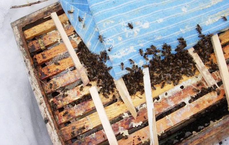 В конце мая в семьях накапливаются соты с пергой, их частично нужно отбирать, посыпать сахарной пудрой, класть в полиэтиленовый мешок и хранить в прохладном месте до формирования гнёзд на зиму.