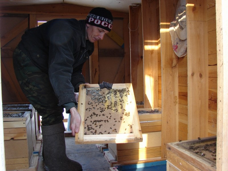 - при таком осмотре не нарушается тепловой и биологический микроклимат семьи (не происходит возбуждение пчел),