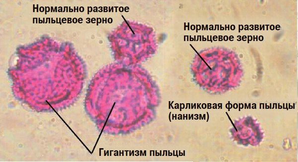 Рис. 2. Нанизм и гигантизм пыльцы одуванчика лекарственного