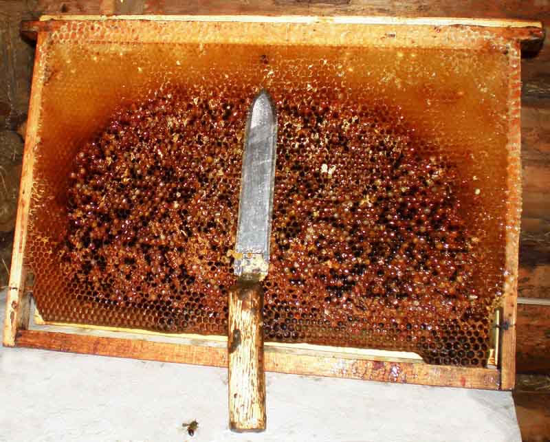 Распечатывание медовых сотов, снимаем забрус